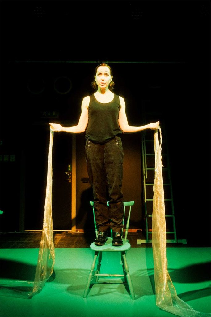Skådespelaren Anna Pareto i De Profundis Teater i Gävle gör en förnämlig gestaltning av sin roll i Kraftverksprinsessan. Foto: Claes Kamp.